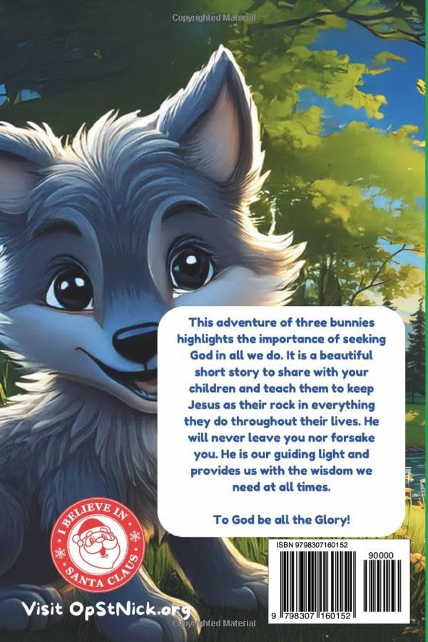 This new version involves three precious little bunnies who have decided to build new burrows for themselves. Each has a unique idea of how to build their new house and what to build it out of. You and your child will love this story about how God will protect you in everything you do when you ask Him to. He is waiting to love you and protect you. Call on Jesus and He is there for you every moment of every single day no matter what you are going through.